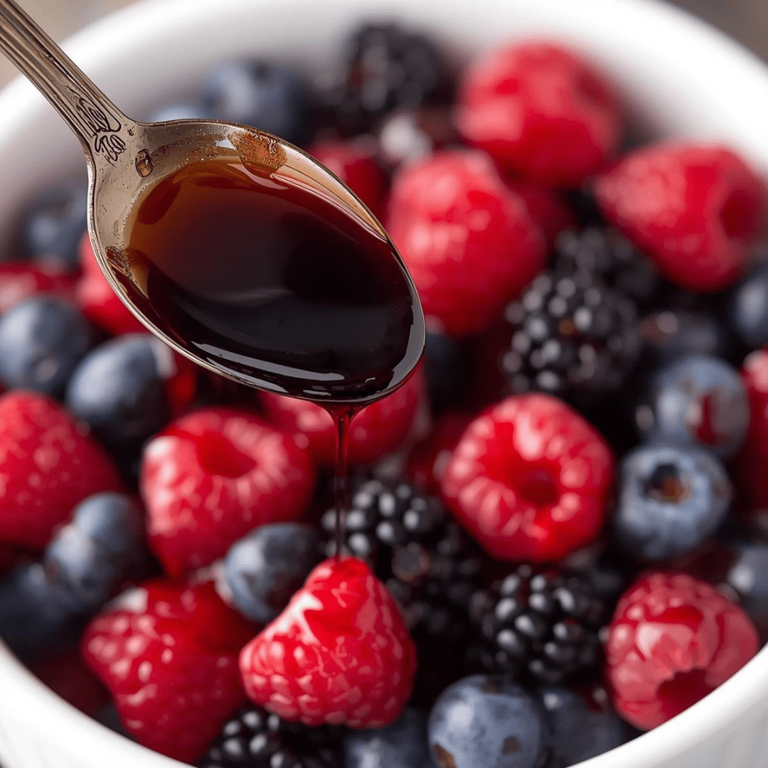 This is one of our favorite balsamic vinegar uses because it’s so easy and instantly rewarding. Drizzle a spoonful over strawberries, blueberries, or mixed fruit. The vinegar’s natural sweetness and acidity bring out the berries’ flavor while adding a subtle tang.