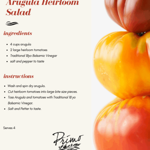 - Toss Arugula and tomatoes with Traditional 18 yo Balsamic Vinegar.